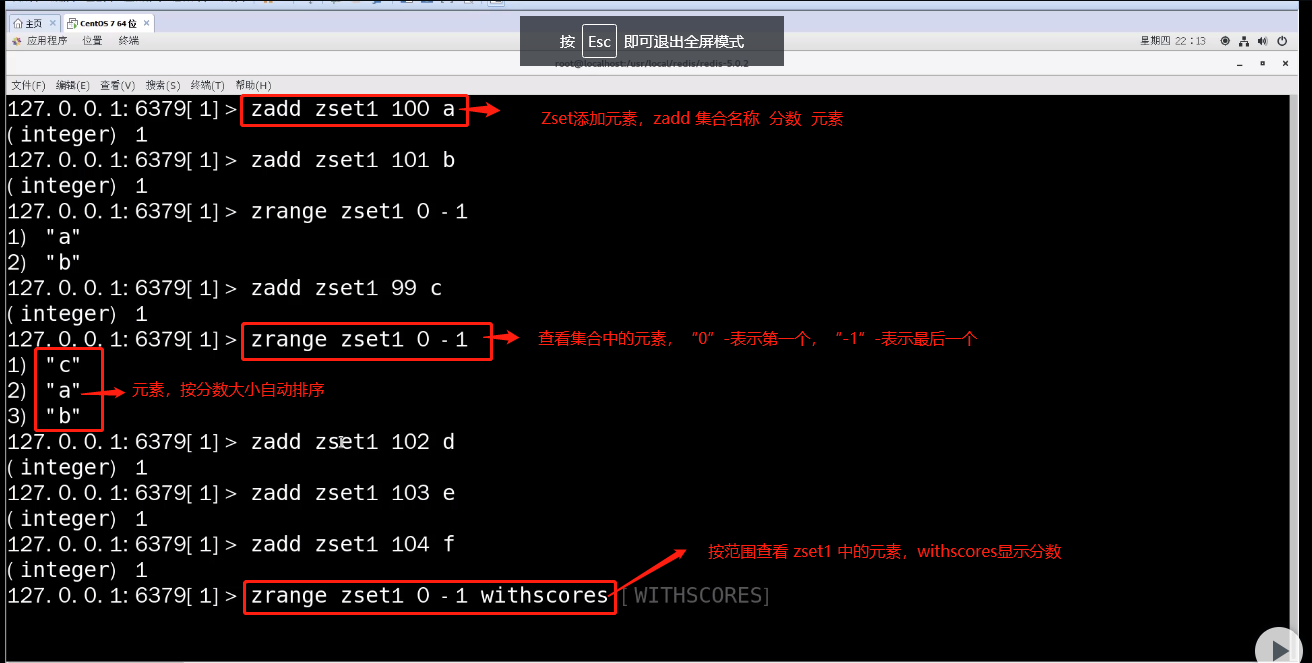 Zset--在set基础上则外增加了一个分数,使Zset成了按分数排列的有效集合
