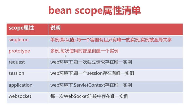 bean scope属性用于决定对象何时被创建与作用范围。