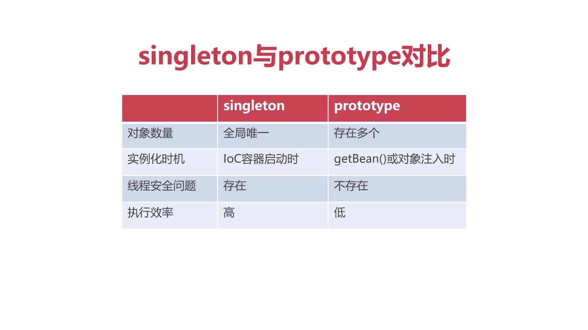 scope=prototype的意思是,每次使用时,需要创建一个新的实例对象,占用更多资源,不存在线程安全问题。