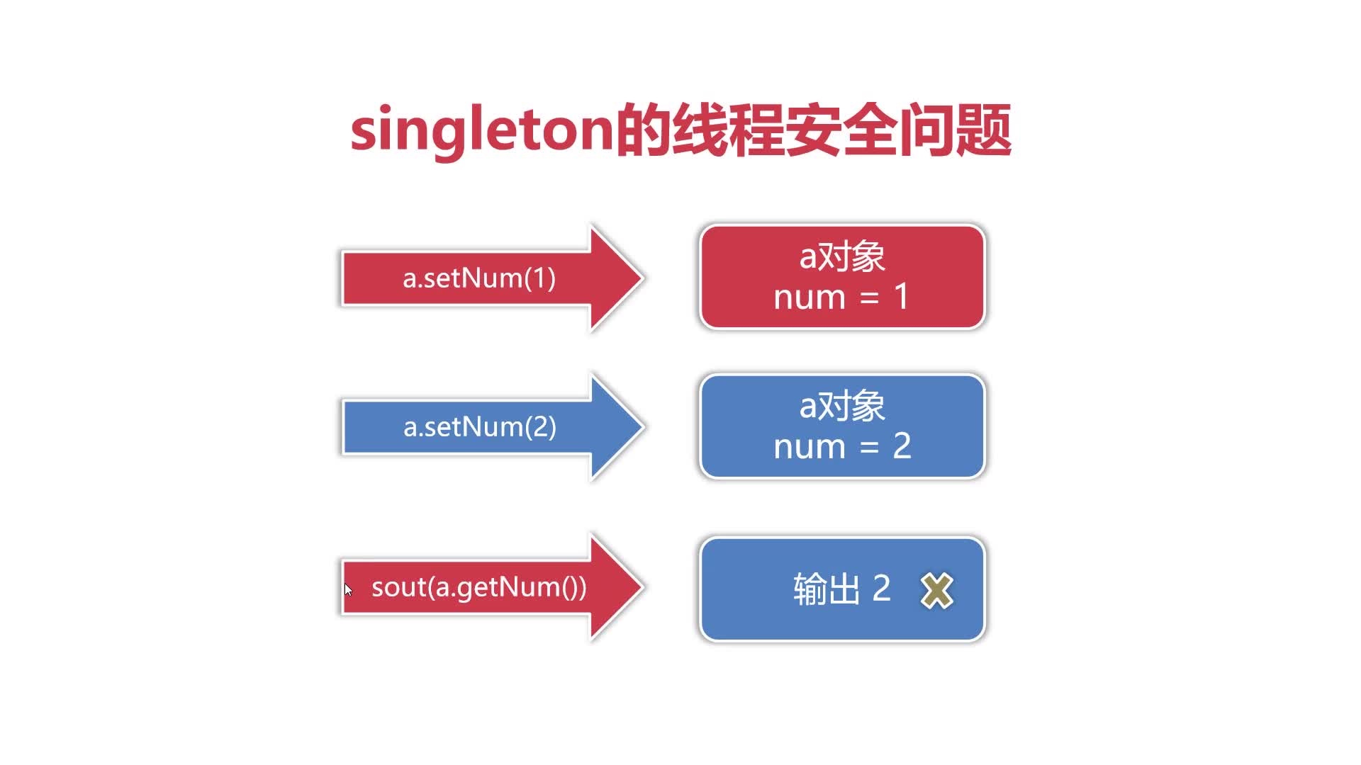 单线程安全问题解决方案:如在synchronized关键字上加锁,在设置和读取的过程中,让当前代码处于独占状态,让用户2只有在用户1处理完之后才能继续处理,把多线程并行改为串行排队执行。