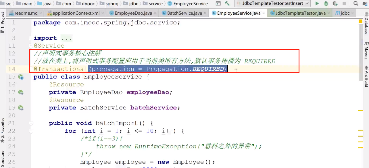 单独定义 指定 方法的事务机制:(如果,方法和类上同时“注释”了事务的传播机制,执行方法时,以方法上“注释”定义的事务传播机制为依据)