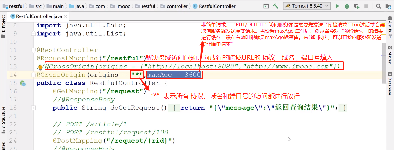@CrossOrigin:Controller跨域注解,说明当前Controller所映射的URL允许被跨域访问。