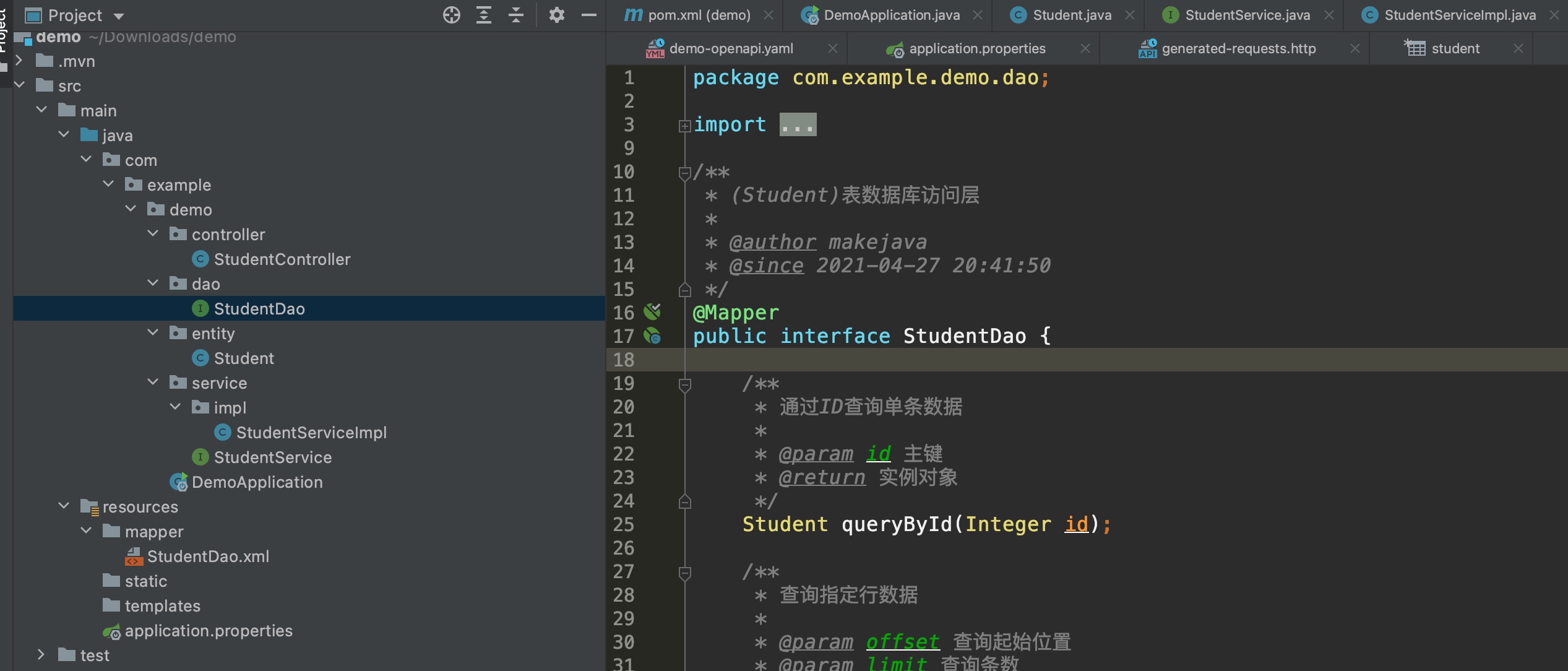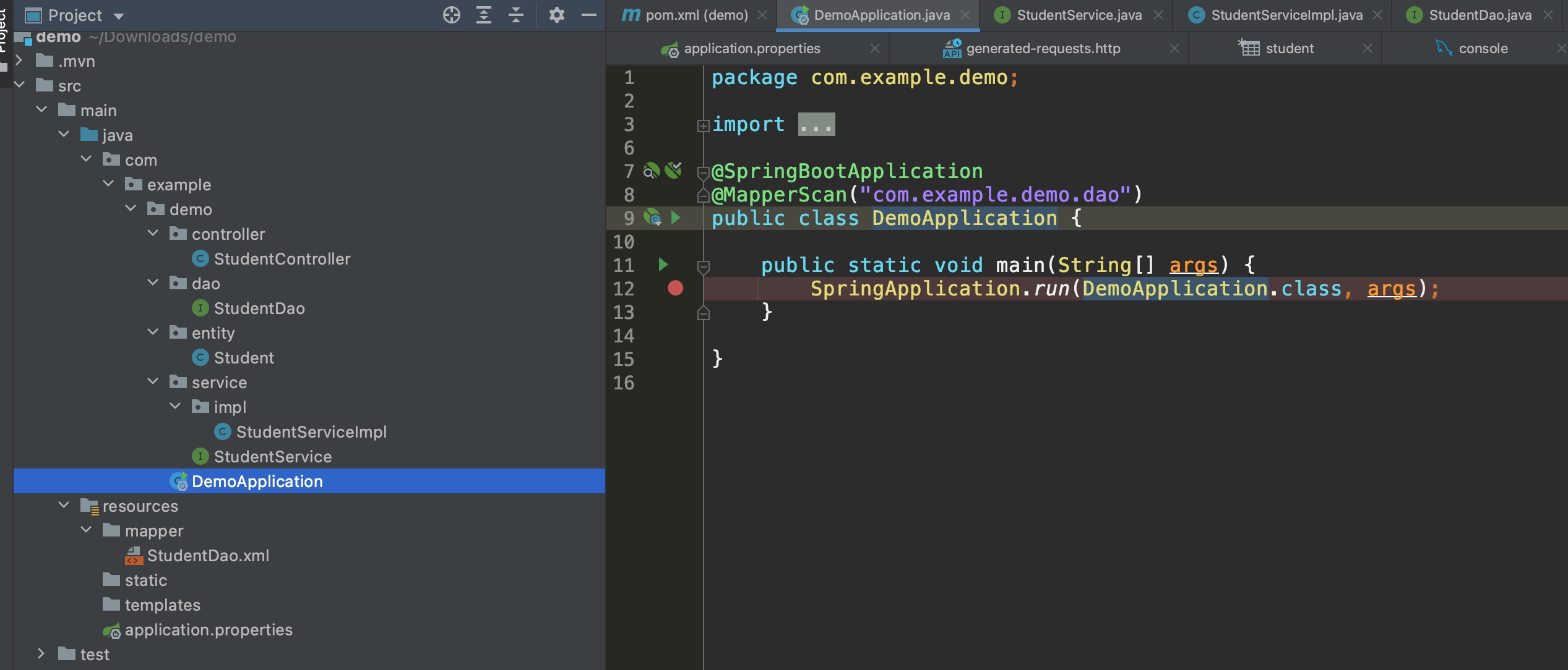 @MapperScan("com.example.demo.dao")// mybatis扫描路径,针对的是接口Mapper类