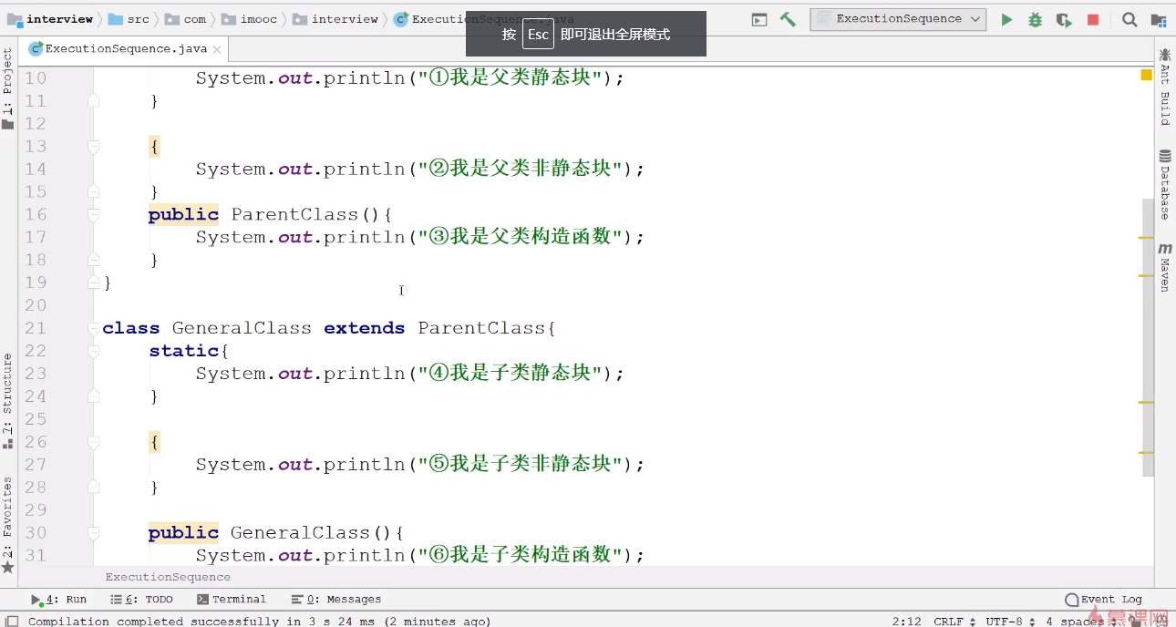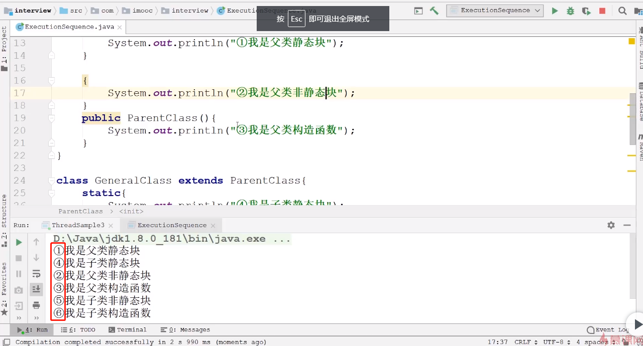 子类被创建时,优先执行父类