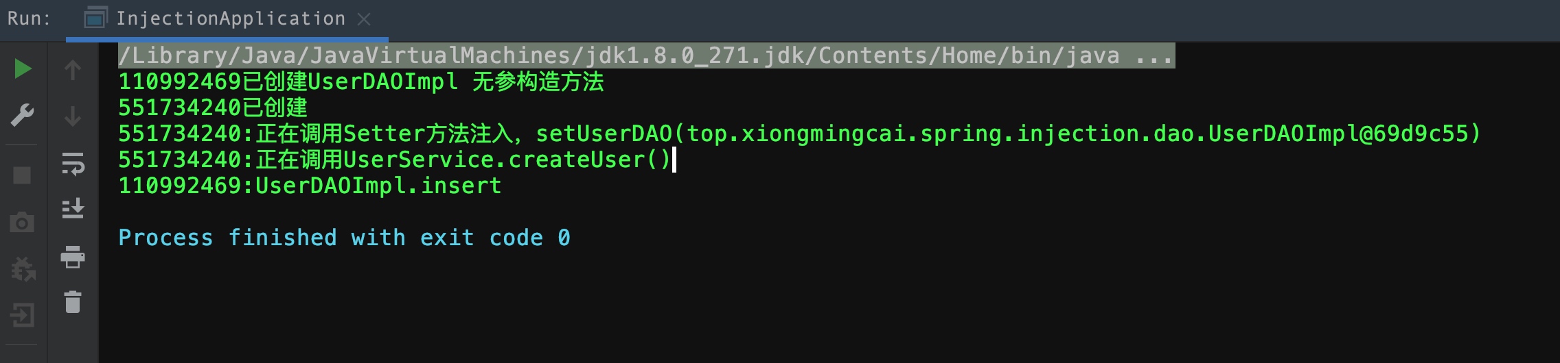 System.out.println(this.hashCode() + ":正在调用Setter方法注入,setUserDAO(" + userDAO + ")");