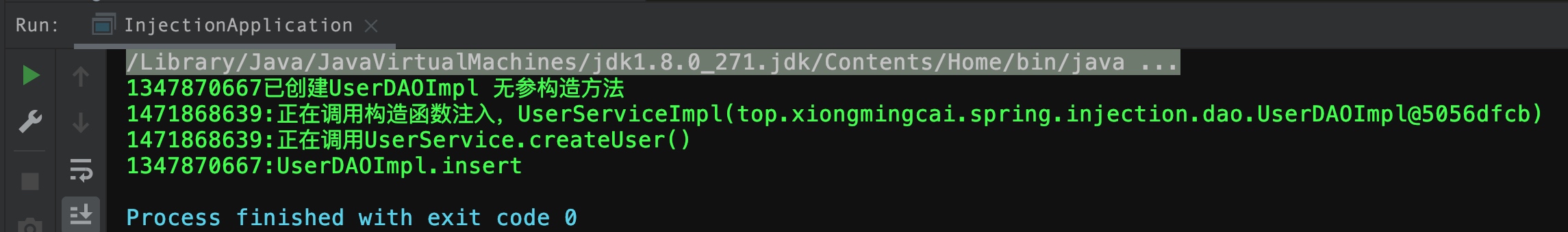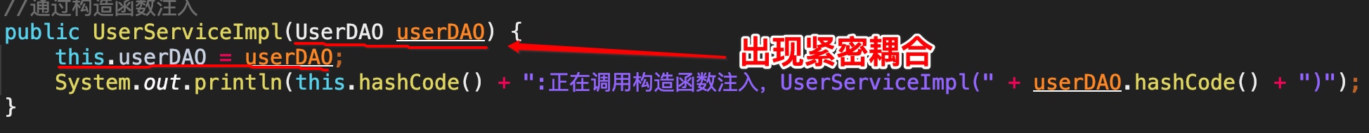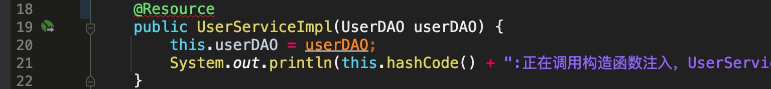 System.out.println(this.hashCode() + ":正在调用构造函数注入,UserServiceImpl(" + userDAO + ")");
