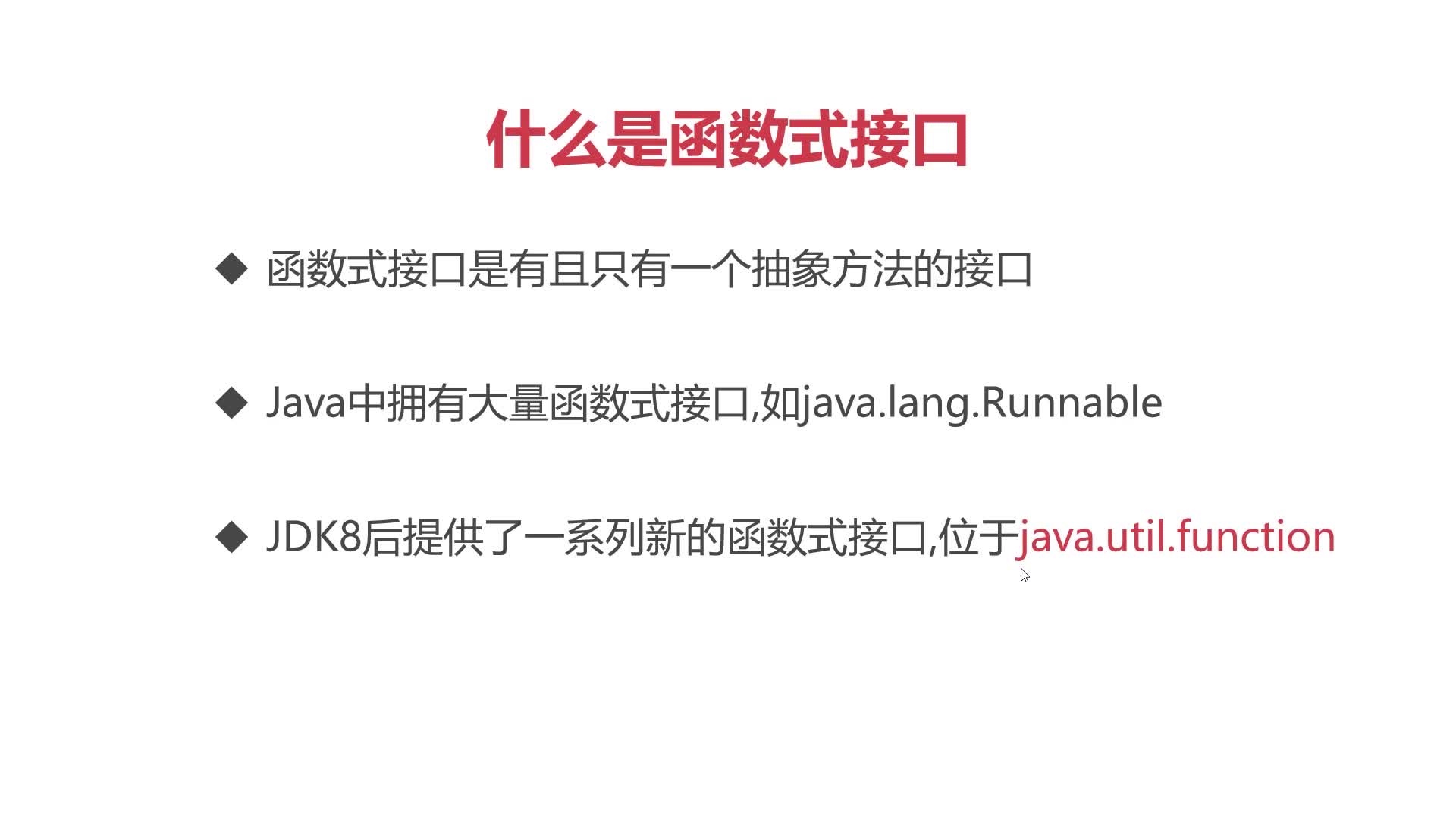 注意:lambda表达式只能实现有且只有一个抽象方法的接口,这种接口java称为“函数式接口”。