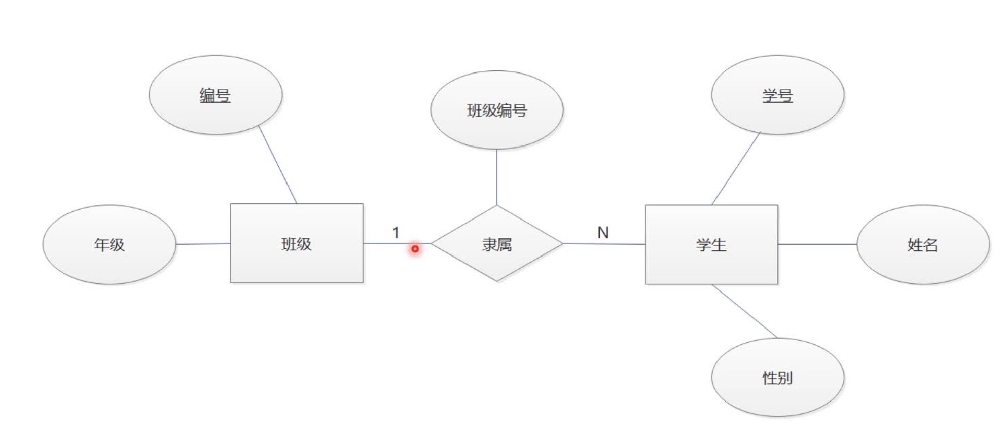 班级和学生这两个实体之间就是一对多的关系,那么一个班级可以对应多个学生,那么这些学生是隶属于同一个班级的,你看我还是用菱形把两个实体给连接起来了,那么班级这边是数字1学生,这边是数字n这个就清晰地表达出一对多的关系。