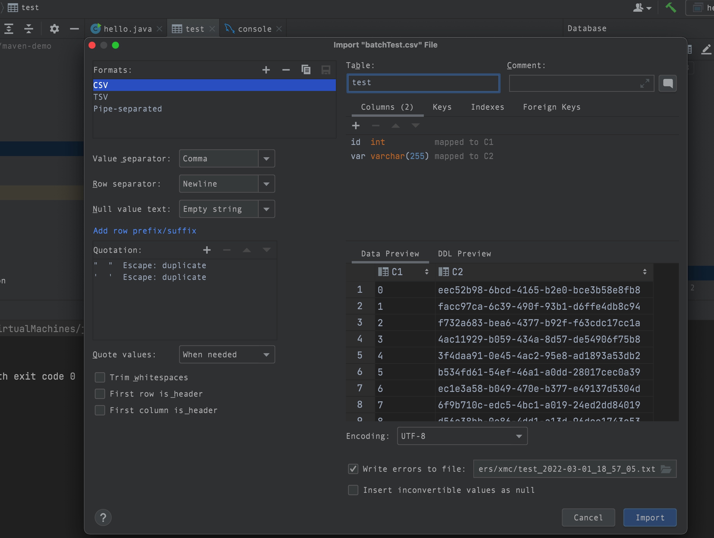 IDEA 导入CSV文件