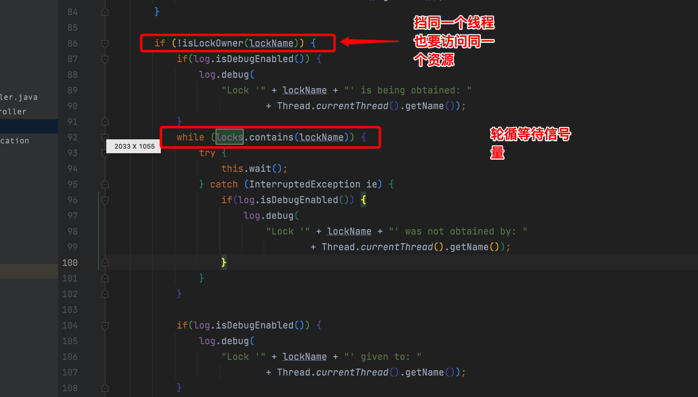 等待信号量,可能是一个复杂的轮损操作。我们来看一下在SimpleSemaphore里边的等待信号量。
