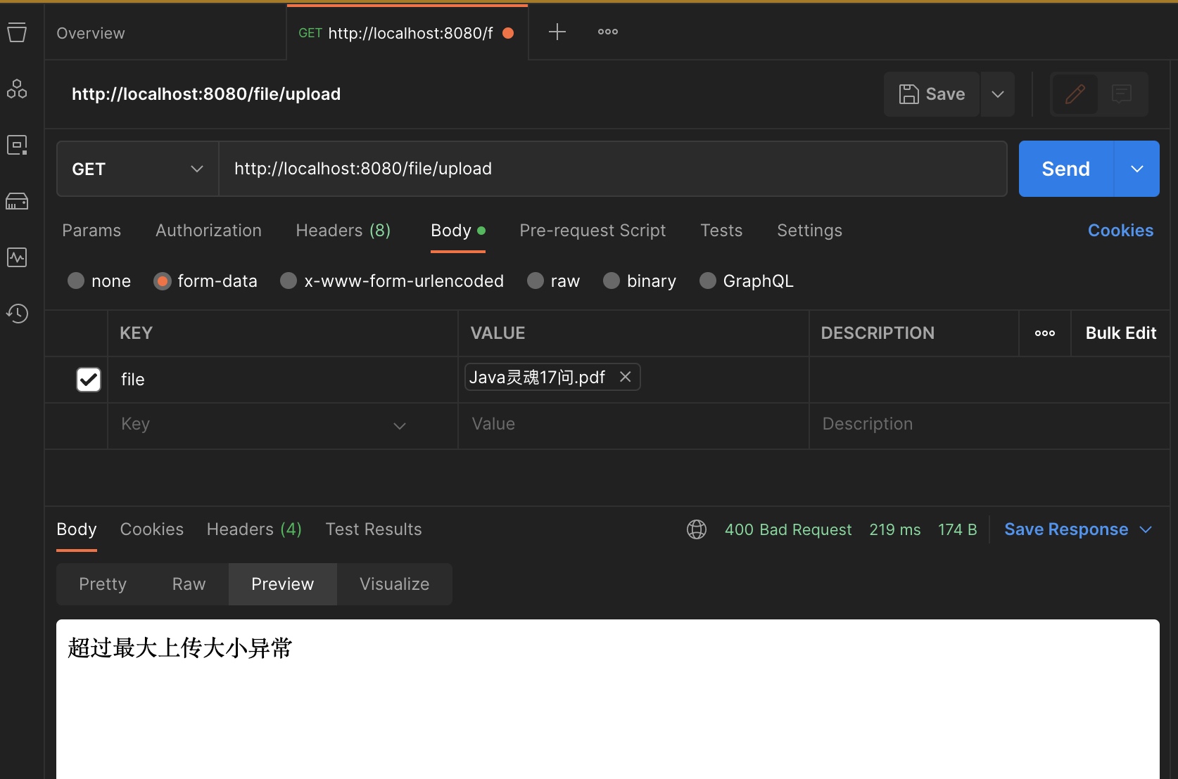 public ResponseEntity<Object> handleMaxUploadSizeExceededException(MaxUploadSizeExceededException ex) {